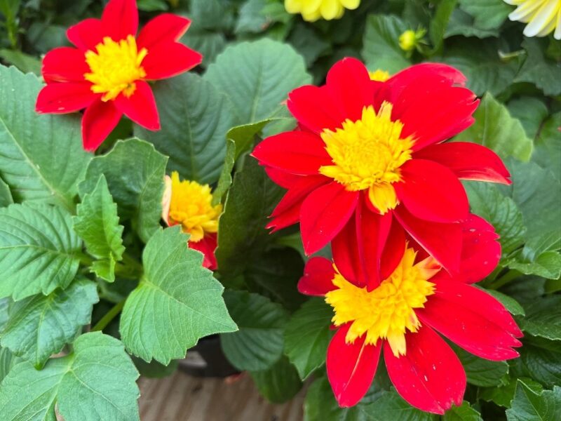 If you’re using dahlias in window boxes, pots, or planters, use potting soil – not garden soil that is too heavy for containers. Add granular fertilizer to the potting soil at the time of planting, and during the growing season as the label directs. Liquid fertilizers can also be used to keep flowers in bloom mode. Remember – moist, well-drained soils and full sun for the best flowering!